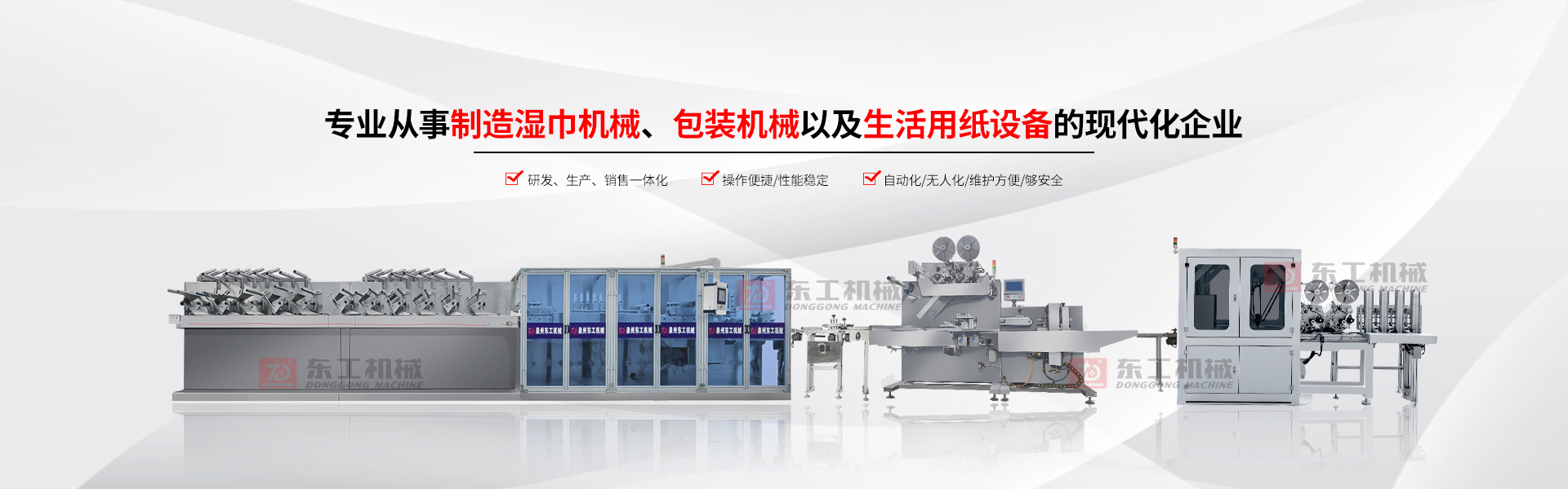 泉州市東工機(jī)械成立于1985年,是專(zhuān)門(mén)從事制造濕巾機(jī)械、包裝機(jī)械以及生活用紙?jiān)O(shè)備的現(xiàn)代化企業(yè)。